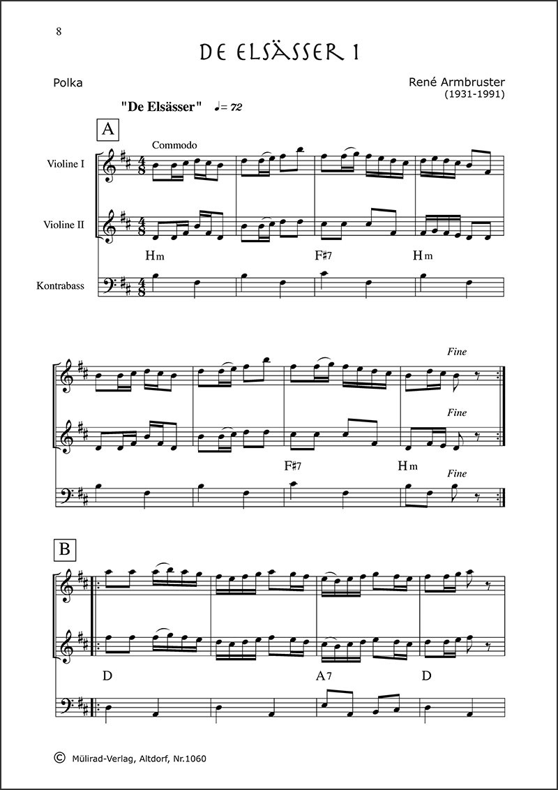 Dieses Heft lässt eine vergessene Musik neu aufleben. Diese wunderschöne Entdeckung macht Sie vertraut mit ungekünstelten und eingängigen Melodien, die auch für Laien oder Jugendliche sehr gut spielbar sind. Mit der Musik im Volkston strebte der Komponist René Armbruster einen verfeinerten kammermusikalischen Stil an, ohne dabei den Bezug zur Volksmusik zu verlieren. So enthält dieses Heft Tänze und Suiten, welche sich gut für festliche Anlässe eignen (Heft 76 Seiten).