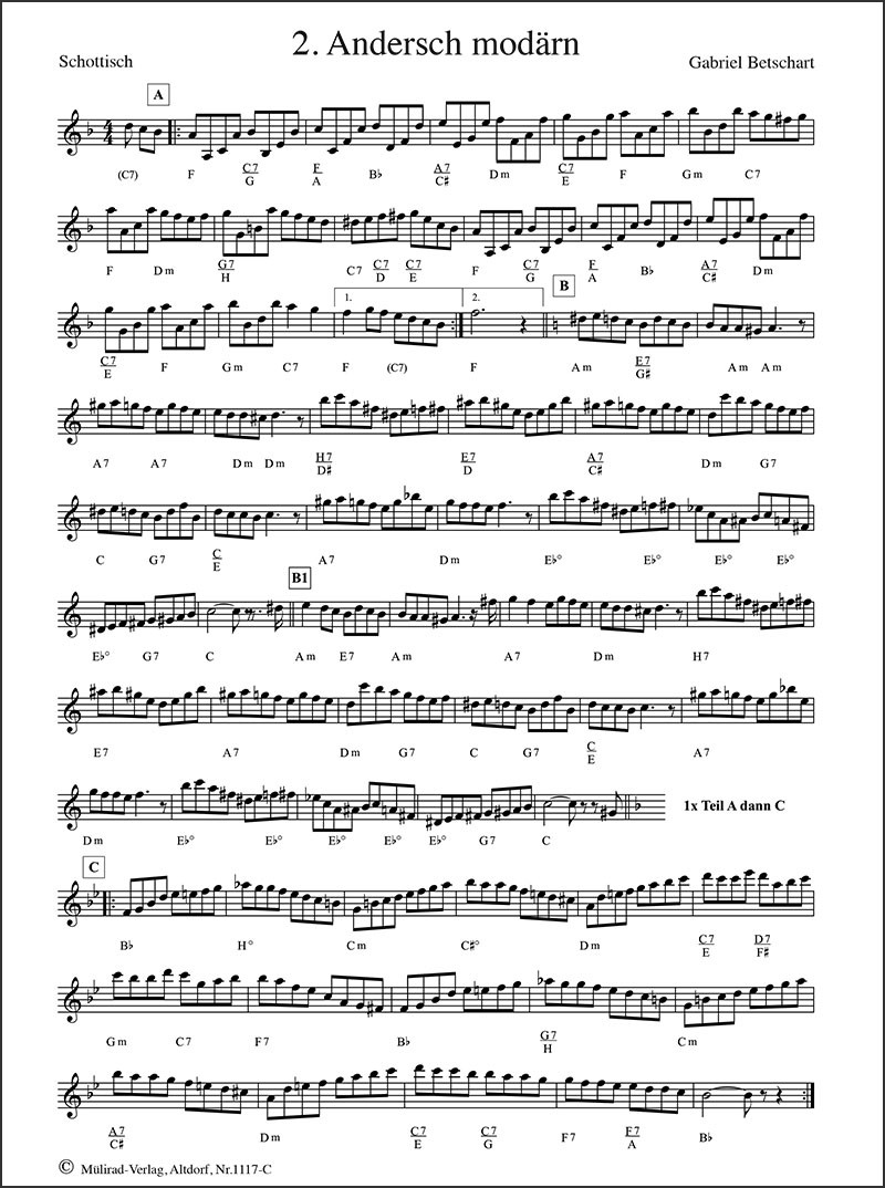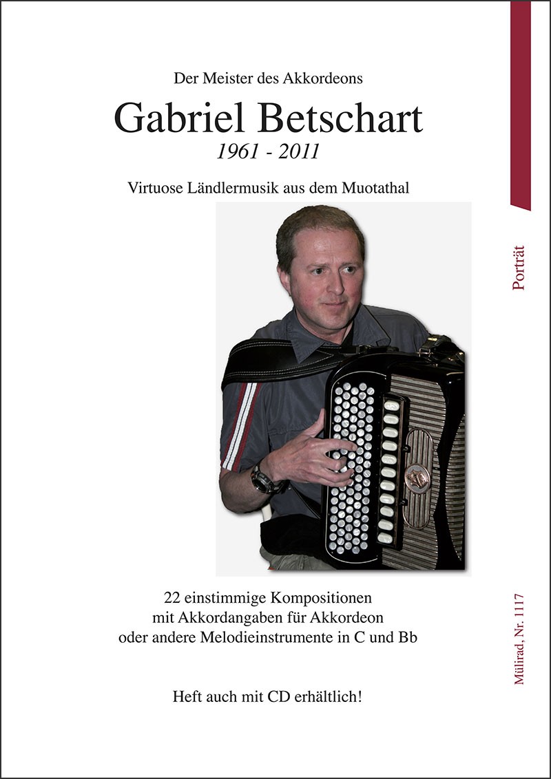 Der Meister des Akkordeons Gabriel Betschart 1961-2011. 22 einstimmige Kompositionen mit Akkordangaben für Akkordeon oder andere Melodieinstrumente in C und Bb Transkription und Bearbeitung Dani Häusler, Fränggi Gehrig, Urs Krienbühl, Willi Valotti, Markus Flückiger, Ueli Mooser und Sepp Wipfl.