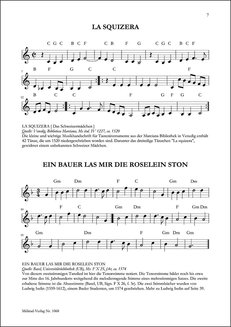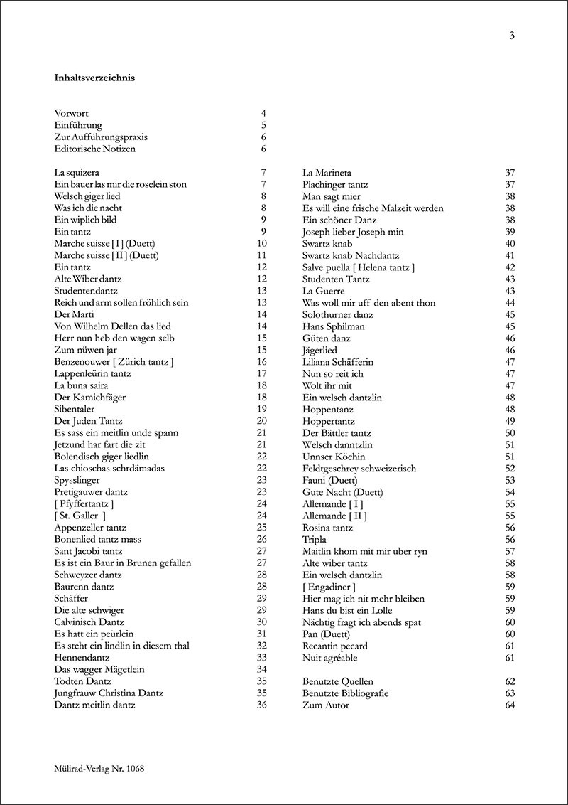 Eingerichtet für ein Melodieinstrument mit Akkordangaben von Christoph Greuter Schweizer Musik «im Volkston» reicht viel weiter zurück und ist weit ergiebiger als bisher fassbar gemacht wurde. Der Herausgeber Christoph Greuter hat als Spezialist für Alte Musik die ältesten Schweizer Handschriften und -drucke mit Instrumentalmusik, die aus dem 16. und 17. Jahrhundert stammen, durchforstet und 88 Musikstücke mit damals «volkstümlichem» Charakter zusammengetragen, neu ediert, kommentiert und für ein Melodieinstrument mit Begleitung eingerichtet. Entstanden ist ein Standardwerk mit der bislang umfassendsten Notensammlung zum Thema «Früheste Schweizer Musik im Volkston». Die alten Eidgenossen, das beweist diese Notenedition, waren alles andere als hüftlahm.