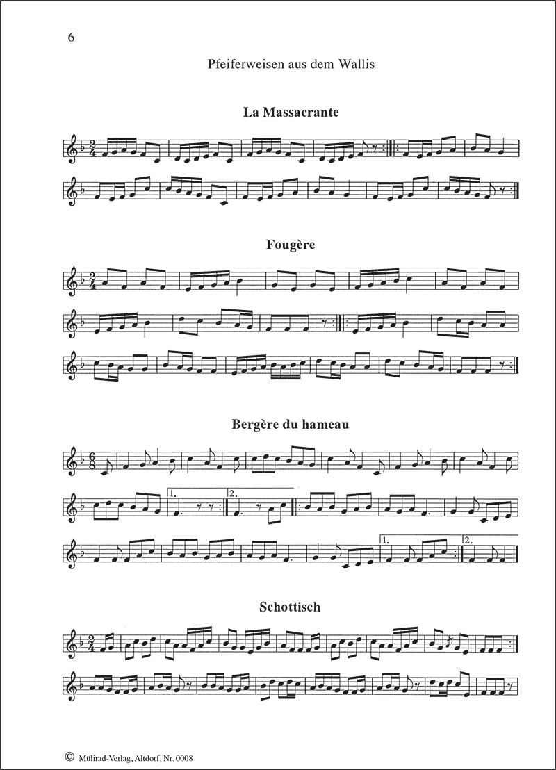 Lieder und Tänze, die sich zum Spielen auf dem Dudelsack eignen. Notation in C-Blfl.Griffen, also für F- und G-Stimmung verwendbar.