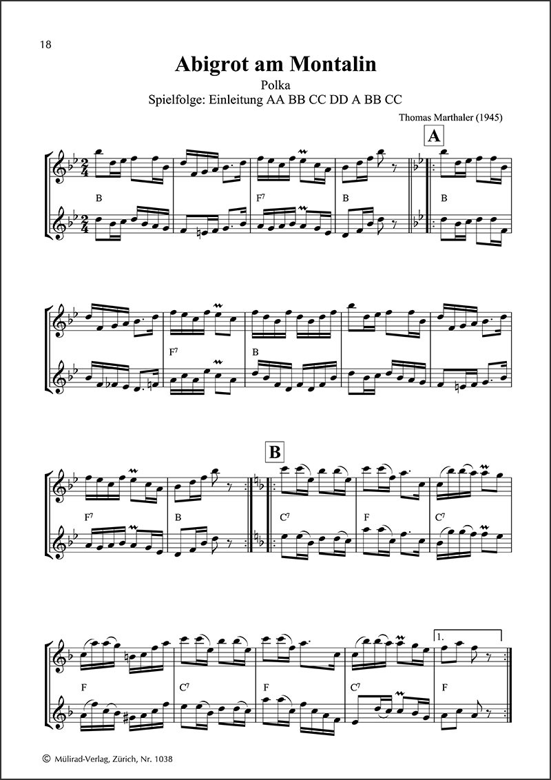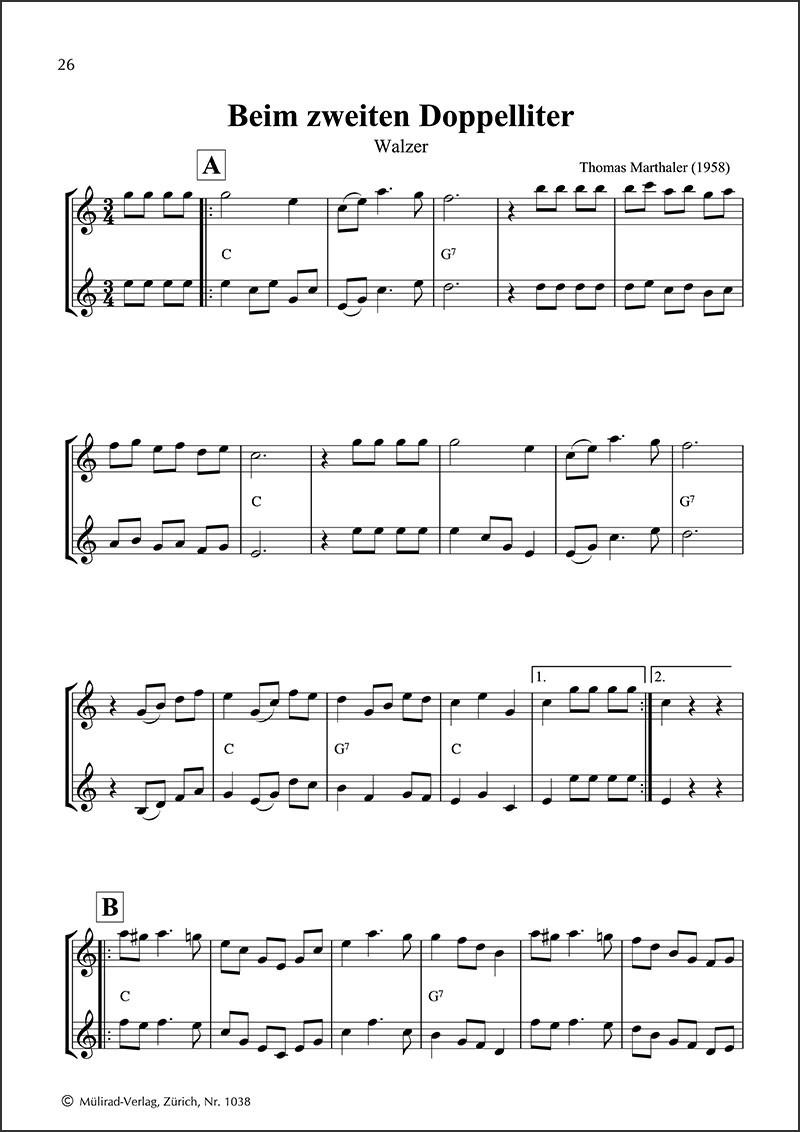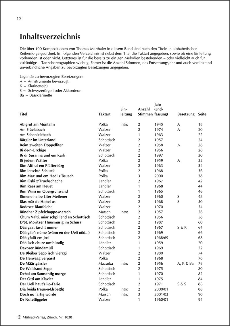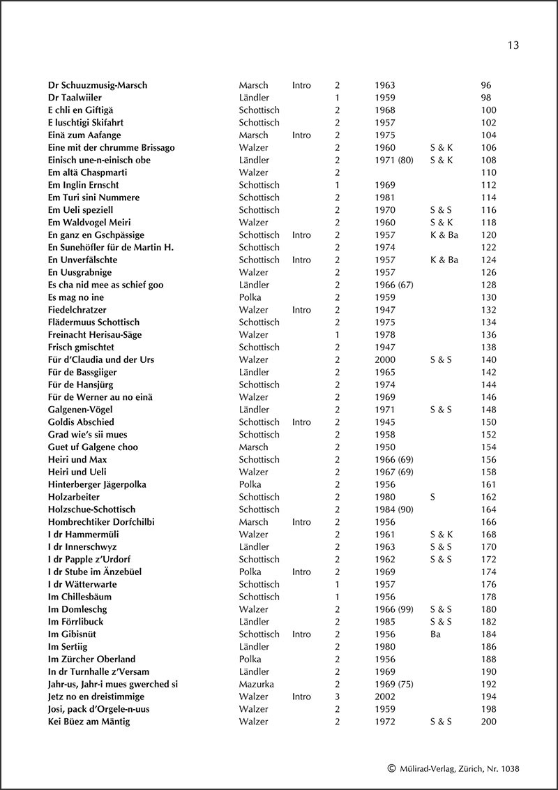 Fast das gesamte Werk des legendären Schweizer Ländler-Klarinettisten ist in diesem sehr umfangreichen und in schöner Buchform gebundenen Band enthalten. Weit über hundert Melodien, die sich zum Teil längst im Schweizer Volksmusikrepertoire etabliert haben, aber auch viele unbekanntere, noch zu entdeckende Stücke. Zweistimmig gesetzt, mit Akkordangaben.
