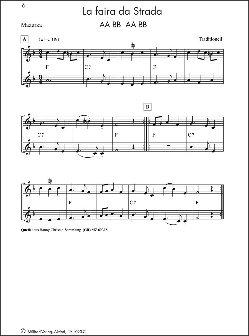 Das Heft beinhaltet 15 einfache Tänzli aus verschiedenen Regionen der Schweiz. Unterschiedliche Tanzarten vom Ländler bis zum Galopp geben Einblick in die Vielfalt der Schweizer Volksmusik. Darunter sind traditionelle, aber auch neu komponierte Tänze von Sergej Simbirev, Hans Moser, Peter Berchtold, Albert Betschart und René Armbruster zu finden. Sämtliche Titel wurden dreistimmig gesetzt. Teilweise erscheint die Melodie auch im Bass-Schlüssel, so dass tiefe Instrumente wie Bass, Cello, Posaune, Tuba usw. die Melodie genauso spielen können. Zusätzlich sind bei allen Stücken Informationen über einfache Begleitmöglichkeiten vorhanden.