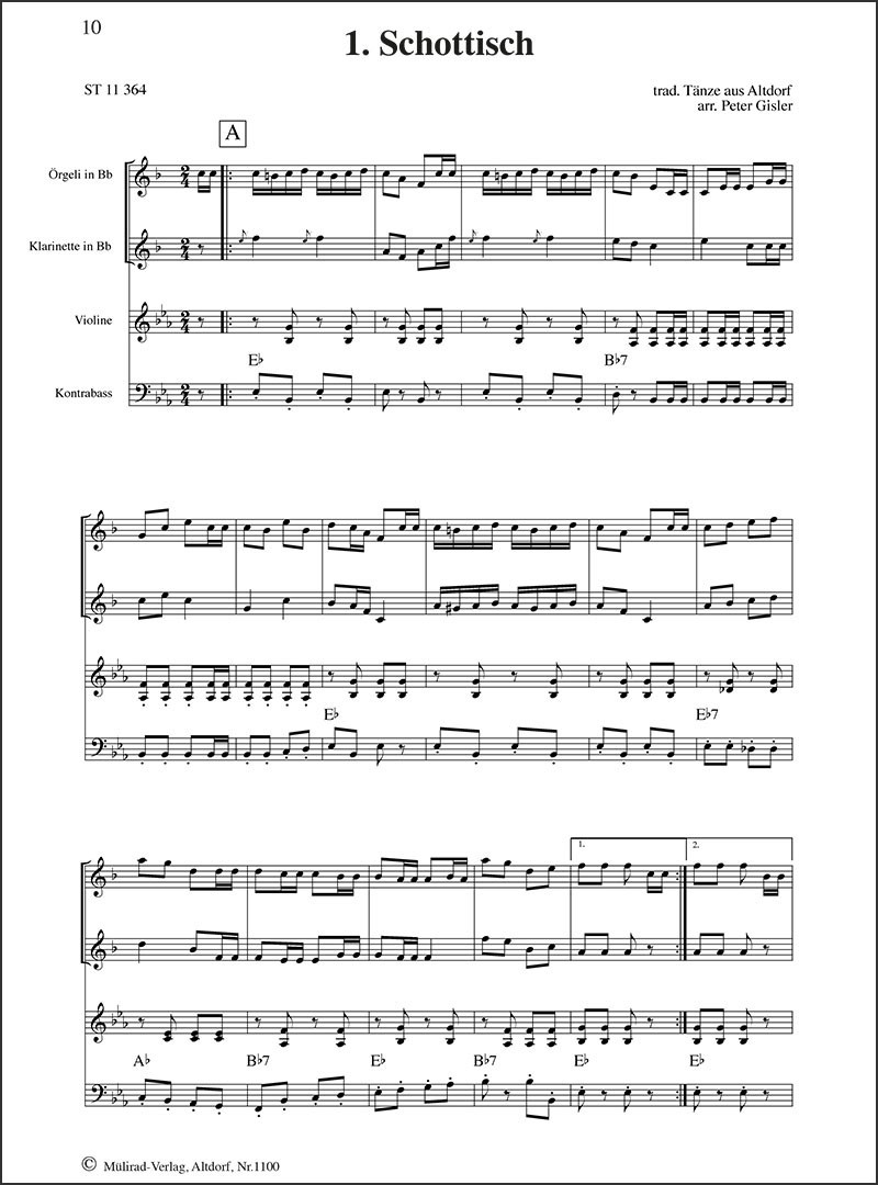 3 - 5 stimmig gesetzt für Klarinette, Trompete, Violine, Örgeli/Akkordon, Kontrabass oder andere Instrumente von Peter Gisler.