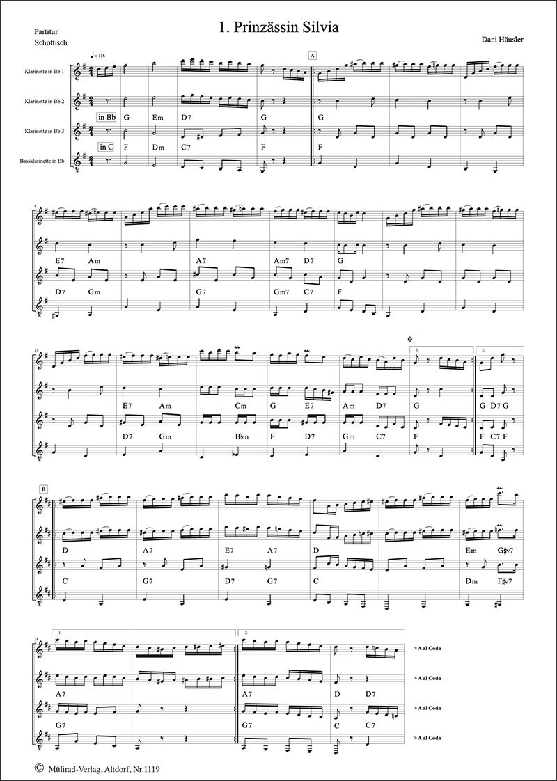 Dieses ist gedacht für fortgeschrittene Ensembles mit Schülerinnen und Schüler, Formationen mit Studentinnen und Studenten bis hin zu professionellen Quartetten, die für ihr Programm noch etwas Volksmusikalisch-Schweizerisches suchen. Die Stücke sind in den führenden Stimmen zum Teil anspruchsvoll, dafür sind die Mittel- und Bassstimmen einfacher gehalten. So ist eine Durchmischung von verschiedenen Schwierigkeitsgraden möglich. Wie in der Volksmusik üblich, wurde bewusst auf genaue Artikulationsangaben verzichtet. Die Melodien dürfen nach eigenem Gusto gespielt werden. Passend zum Notenheft ist auch die CD "Dani Häusler im Quadrat" erschienen.