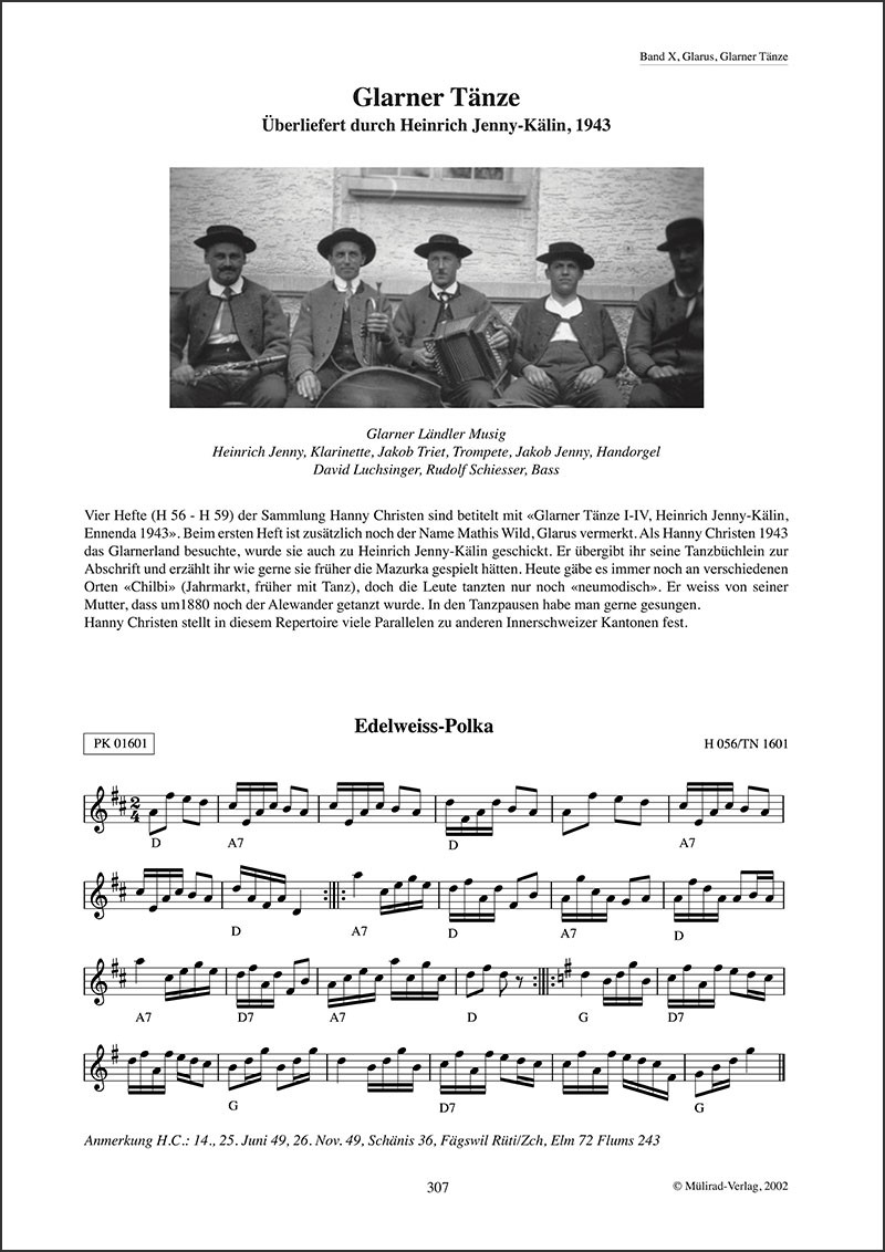 Eine umfassende Sammlung der Schweizer Tanzmusik zwischen 1830 und 1960 Ca. 12'000 Melodien aus dem 19. und 20. Jahrhundert aus allen Regionen der Schweiz gesammelt von der Volkskundlerin Hanny Christen (1899-1976). Mit der Herausgabe dieser Sammlung wurde einer der grössten Volksmusikschätze des Alpenraumes der Öffentlichkeit zugänglich gemacht. Während Jahrzehnten bereiste Hanny Christen die ganze Schweiz, liess sich von den Musikanten vorspielen oder schrieb deren Tanzbüchlein ab.