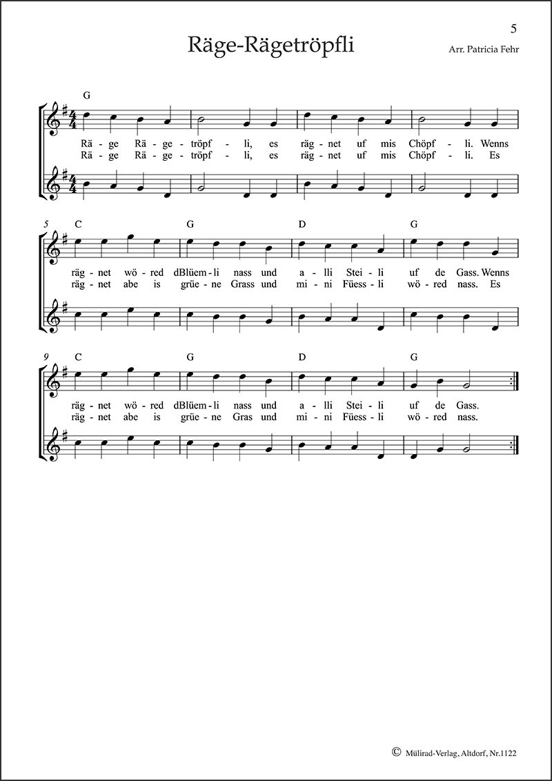 Für klassische Gitarre oder andere Melodieinstrumente im Ostschweizer Dialekt Gesammelt und eingerichtet für zwei Gitarren mit Akkordangaben von Patricia Fehr