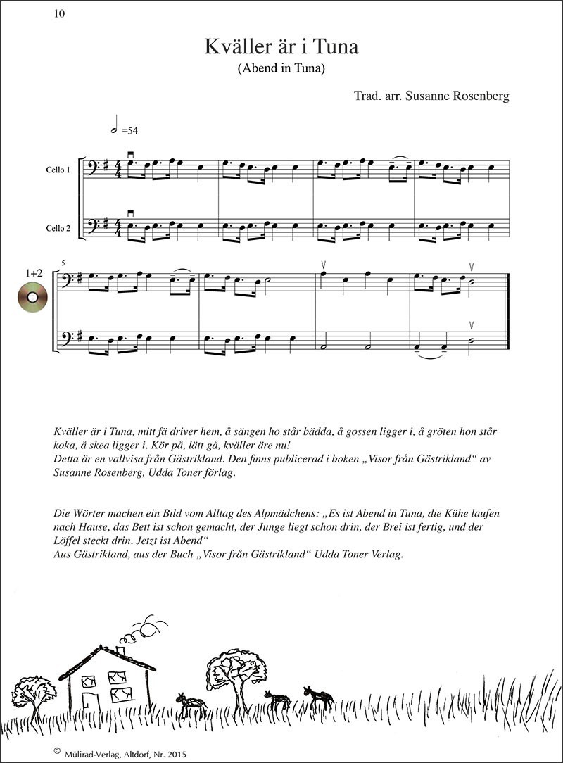 Annika Dobler studierte Volksmusik in Stockholm. Seit ihrem Studium bis heute kristallisierte sich mit der Zeit ein Lieblings-Repertoire heraus, das sie in diesem Band zusammen getragen hat. Die Spielweise schwedischer Volksmusik wird dabei genau beschrieben. In der beiliegender CD wurden alle Stimmen von Annika Dobler eingespielt. Dieser Band eignet sich gut für den Unterricht und die Stücke geben den Schülern eine spannende Abwechslung.